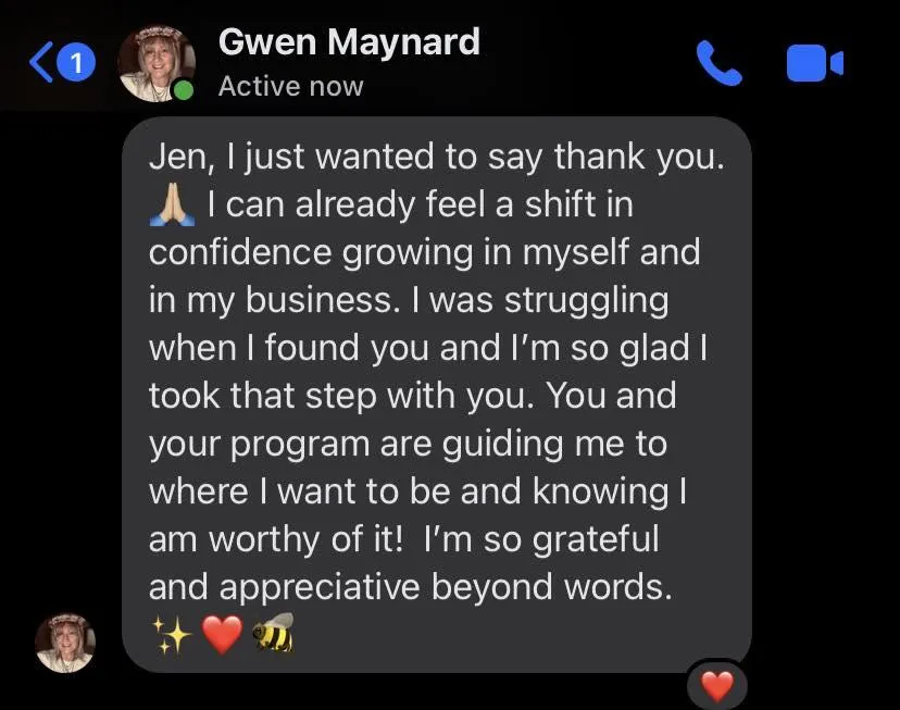 Hi, my name is Coach Jen Bee 🐝! I am the founder of GROW 🌱. I'm on a quest to turn my "mess into my message" now empowering you to pivot from struggling entrepreneur to 6 figure business owner just as I did.